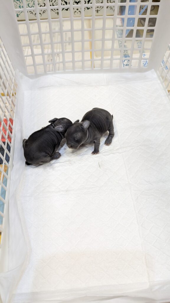 そして、Ibizaは双子で、もう1羽もブラックの女の子です。素人には全く見分けがつかないレベルですが、成長すると少しずつ毛色や大きさ、顔に違いが出てくるようですが、生まれて1ヶ月くらいまではほぼ見分けがつかず、1ヶ月半くらいでようやく少しだけ違いが出てきたようです。